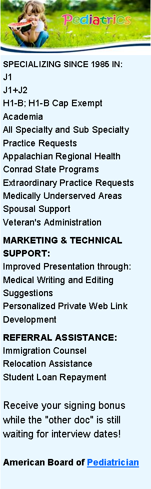 I met my consultant after I was referred by my program director. She was kind and professional. I worked very hard in my residency and I knew that if I was to located a qualified J1 practice I would need to pick the right agency to accept my assignment. I am so grateful hat my consultant called me. I felt really comfortable when she reviewed her agreement with me line by line. I accepted the option “B” plan because it guaranteed that I would be placed. It cost me five thousand dollars upfront which was really an act of faith as I was a pediatric resident and not making very much money . But she delivered a wonderful practice in a small town in Florida. She helped me with a legal referral too. I know if I ever need to move somewhere else she is the person I will call.